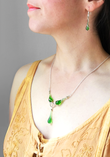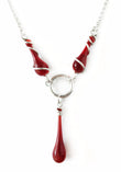 We use stained art glass or recycled bottle glass to make the droplets themselves. All wire and ear hooks are hypo-allergenic sterling silver, and the sterling silver wire is 100% recycled. Necklaces come on sterling silver chain.