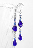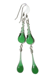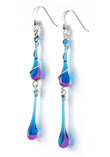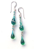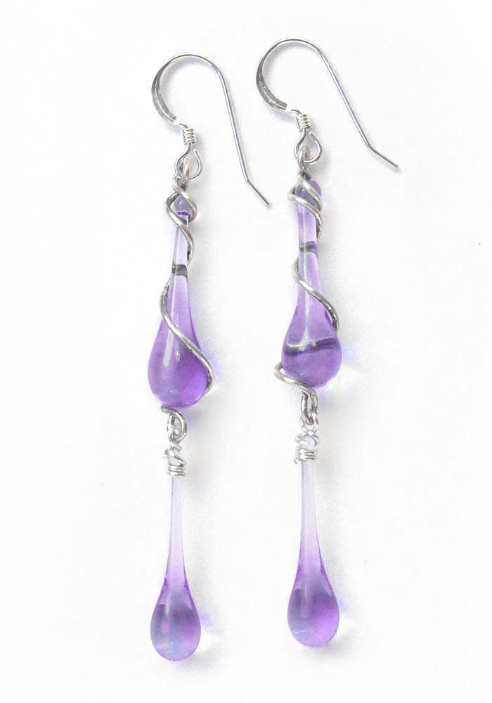 We use stained art glass or recycled bottle glass to make the droplets themselves. All wire and ear hooks are hypo-allergenic sterling silver, and the sterling silver wire is 100% recycled. Necklaces come on sterling silver chain.