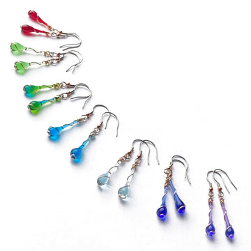 Sun-melted glass earrings, necklaces and bracelets, set in recycled Argentium silver