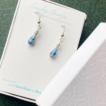 Sun-melted glass earrings, necklaces and bracelets, set in recycled Argentium silver
