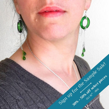 At Sundrop Jewelry we help you "spread sunshine all over the place," from a day at the park, through your long workday, or a night on the town! A sunny day, a giant magnifying glass & recycled glass bottles - it all adds up to elegant, sun-melted glass earrings, pendant necklaces & more. All set in recycled sterling silver for your sustainable lifestyle!