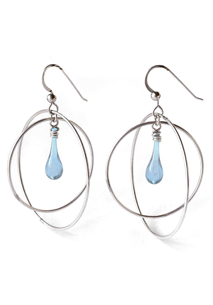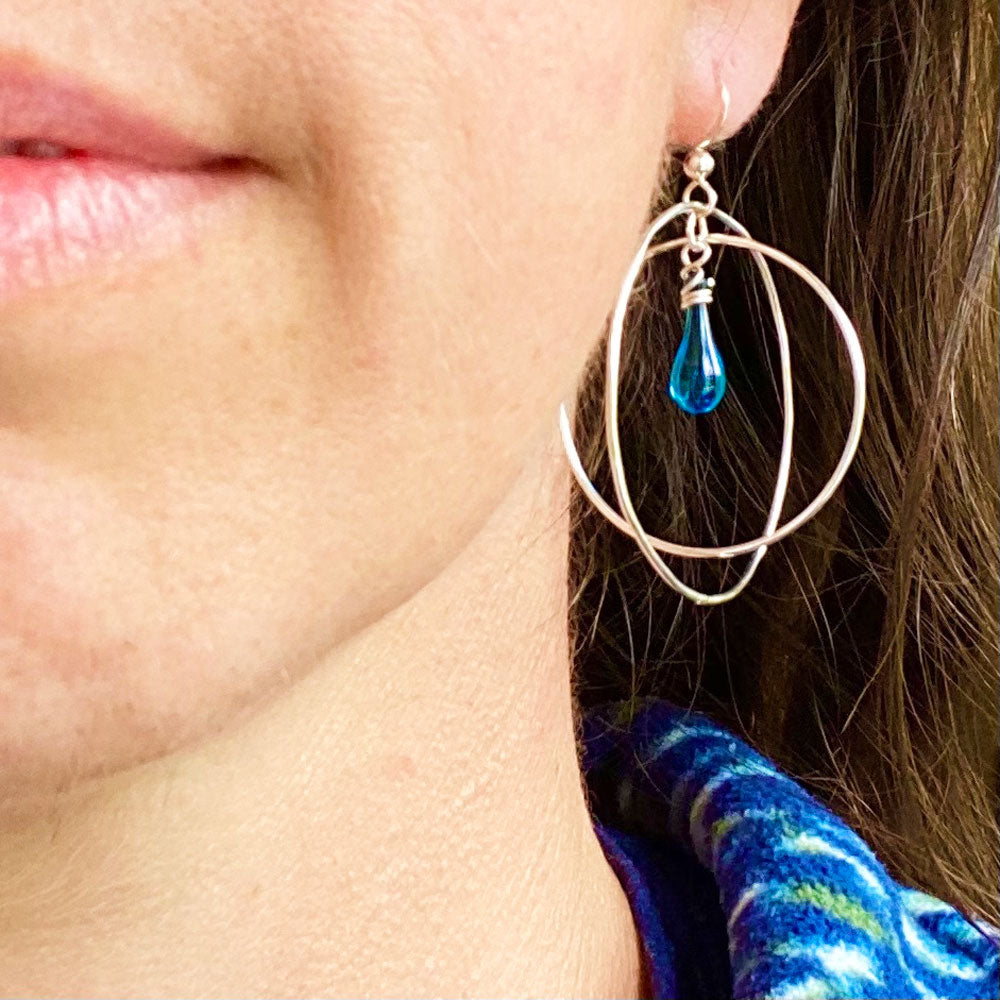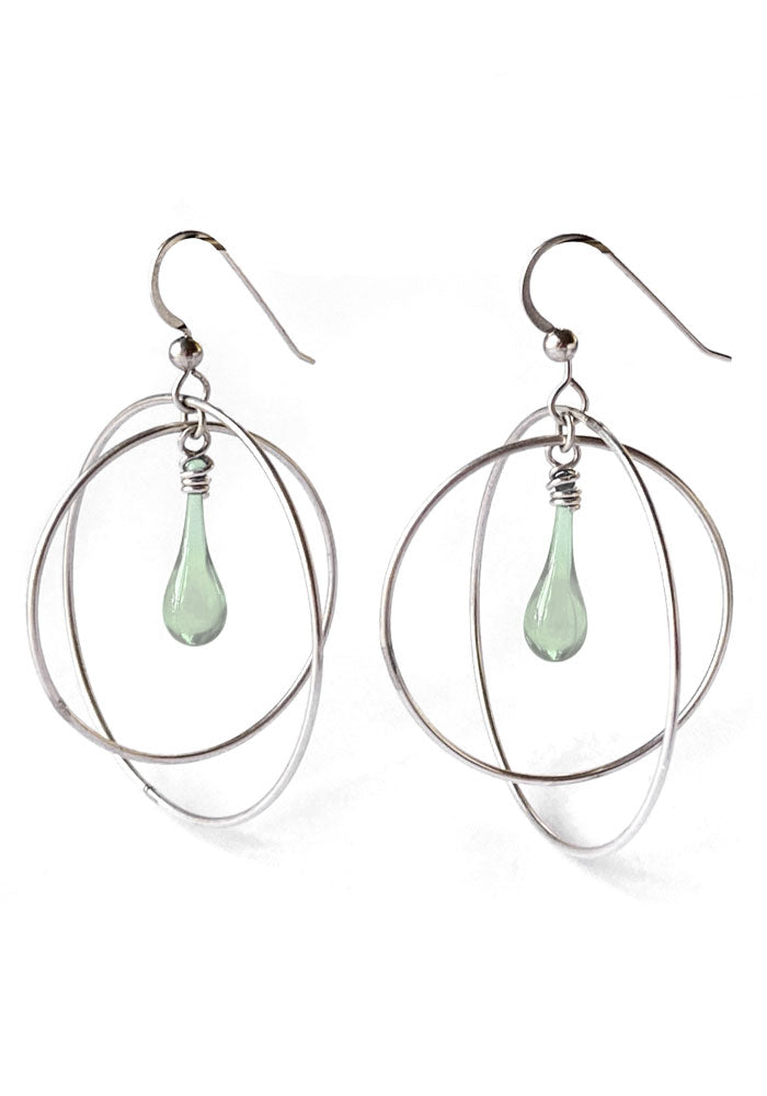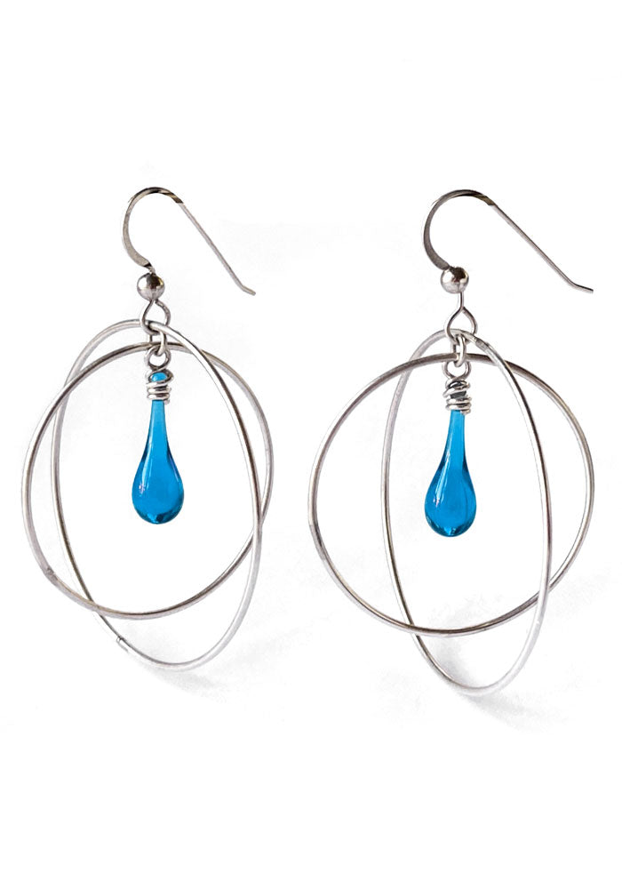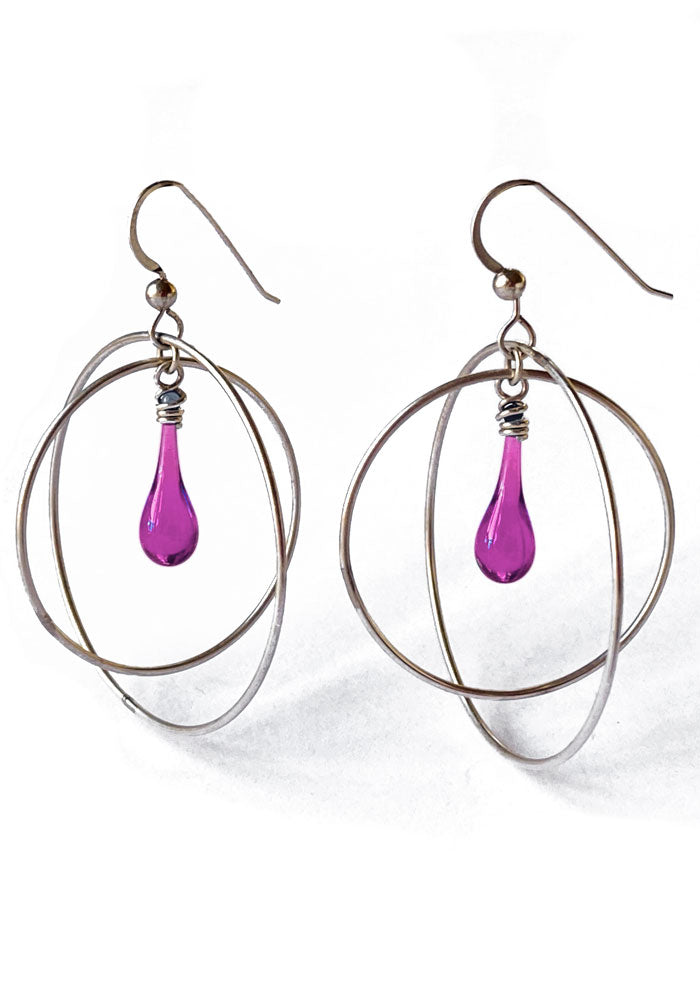 These free swinging gyroscope earrings with a dainty drop of glowing glass will carry you through any day - or night! Sized just right for daily wear, these earrings will become your new “go to” earrings.