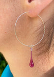 You are unique and original, and your jewelry should be too! Each drop of glass is handmade in the artist’s backyard studio in Berkeley, California. Using a giant magnifying glass to focus sunshine, recycled bottles and stained glass were melted into these translucent, flowing drops under the open sky! No pieces are exactly alike.