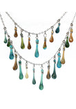 We use stained art glass or recycled bottle glass to make the droplets themselves. All wire and ear hooks are hypo-allergenic sterling silver, and the sterling silver wire is 100% recycled. Necklaces come on sterling silver chain.