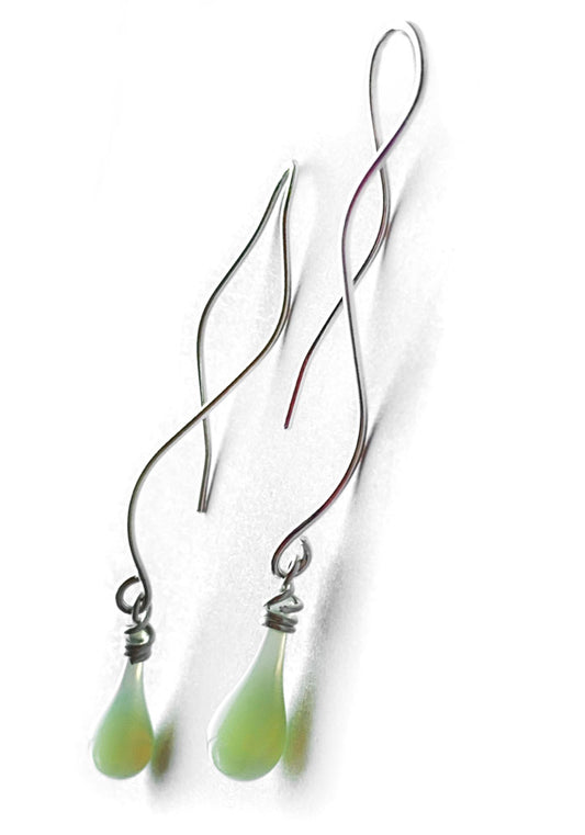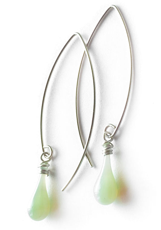 The milky pale green of these simple yet elegant glass earrings evoke the smooth flow of...