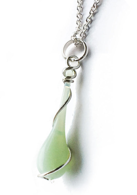 A pale milky green evokes the smooth flow of molten glass, frozen forever in an elegant drop...