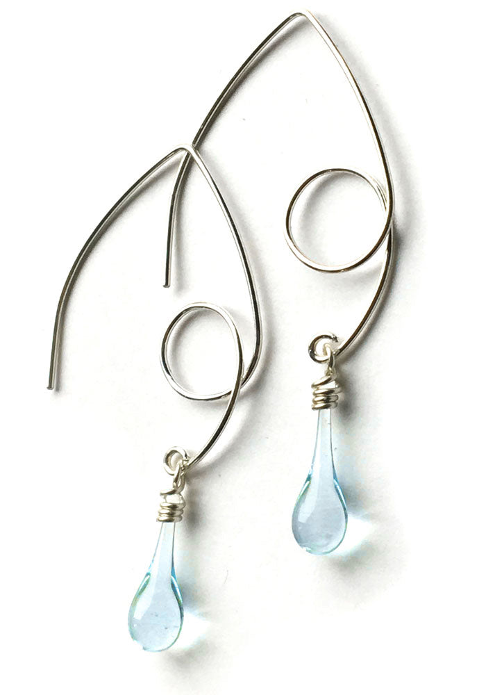 We use stained art glass or recycled bottle glass to make the droplets themselves. All wire and ear hooks are hypo-allergenic sterling silver, and the sterling silver wire is 100% recycled. Necklaces come on sterling silver chain.