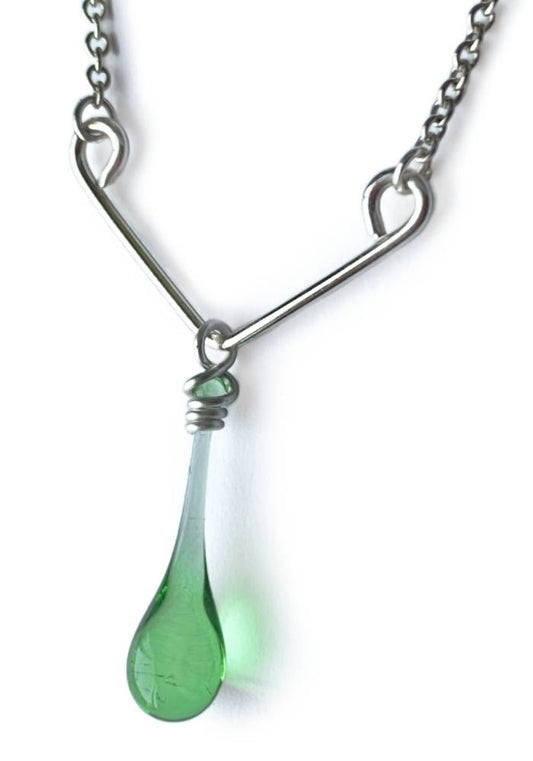 A single teardrop drips elegantly from a small silver V. Made from stained glass and...