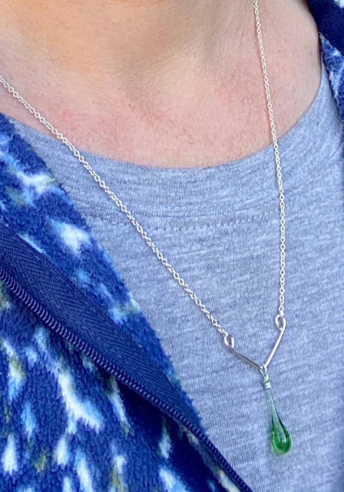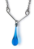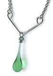 We use stained art glass or recycled bottle glass to make the droplets themselves. All wire and ear hooks are hypo-allergenic sterling silver, and the sterling silver wire is 100% recycled. Necklaces come on sterling silver chain.