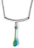 We use stained art glass or recycled bottle glass to make the droplets themselves. All wire and ear hooks are hypo-allergenic sterling silver, and the sterling silver wire is 100% recycled. Necklaces come on sterling silver chain.