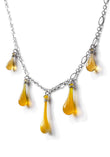 Five handmade glass droplets drip from a chain of sparkling silver in this exquisite necklace design. Make a delicate statement and brighten any day in sunny warm yellows.