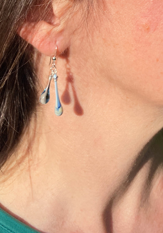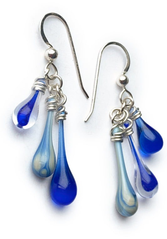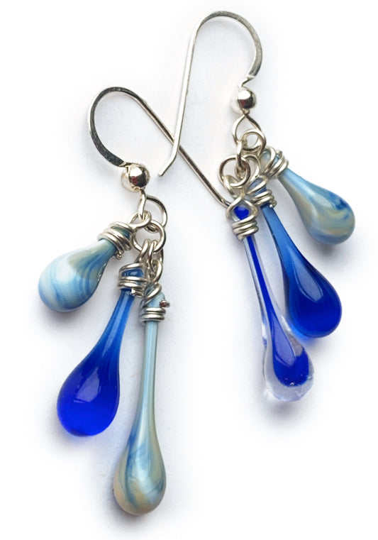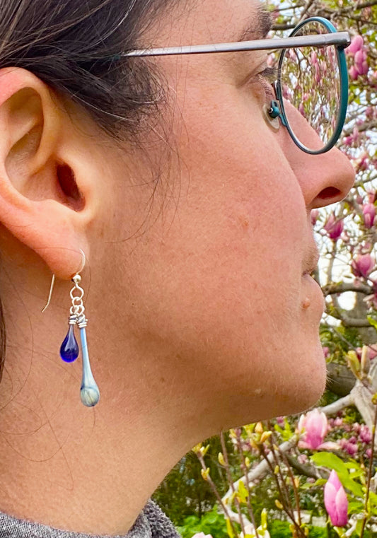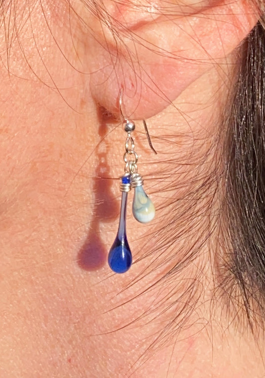 Cloudy swirls of blue and cream pair with deep cobalt blue glass teardrops to go...