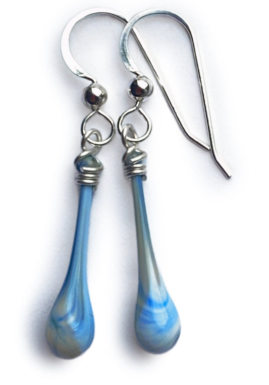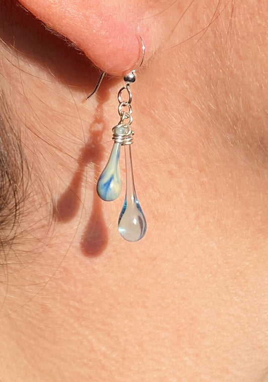 Cloudy swirls of blue and cream pair with pale blue glass teardrops to go with...
