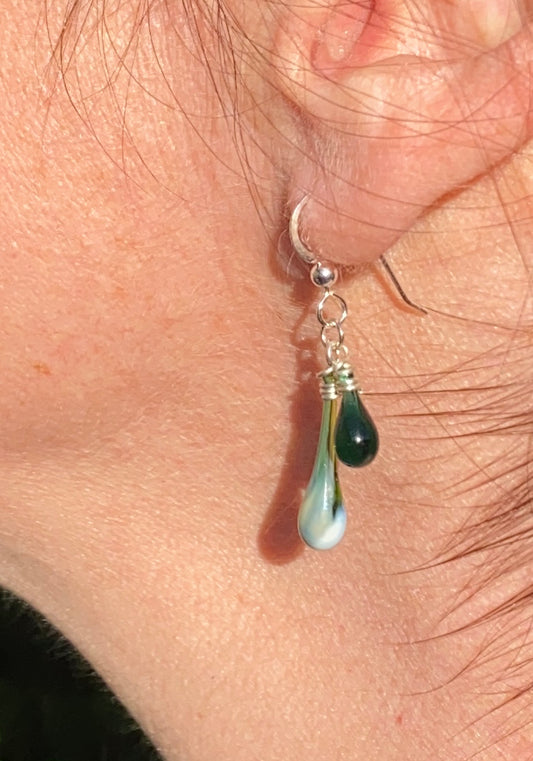 Cloudy swirls of blue and cream pair with dark teal glass teardrops to go with...
