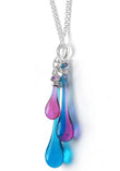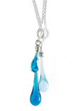 We use stained art glass or recycled bottle glass to make the droplets themselves. All wire and ear hooks are hypo-allergenic sterling silver, and the sterling silver wire is 100% recycled. Necklaces come on sterling silver chain.