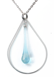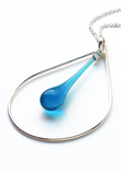This handmade necklace will make a charming addition to your favorite outfit. The captivating glass teardrop is framed in a sterling silver pear shape, and hangs from a recycled sterling silver chain. Melted using sunshine and a giant magnifying glass, the glass drop in this handmade necklace is one of a kind - no two pieces are exactly alike. You are unique and original - your jewelry should be too!
