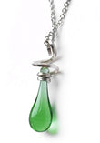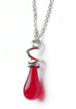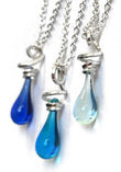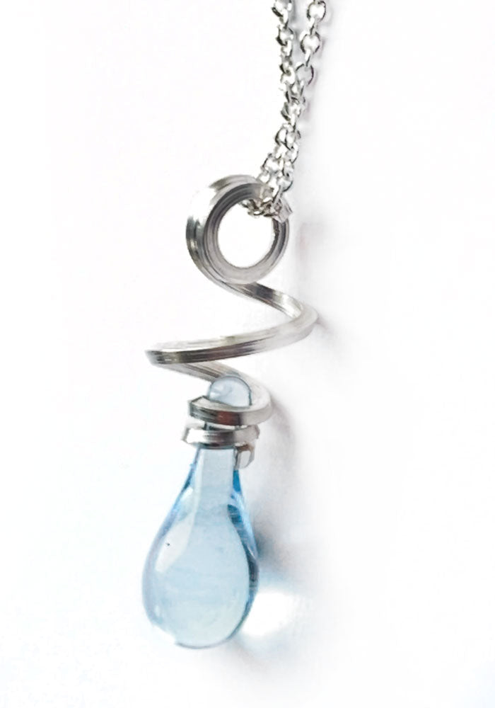 We use stained art glass or recycled bottle glass to make the droplets themselves. All wire and ear hooks are hypo-allergenic sterling silver, and the sterling silver wire is 100% recycled. Necklaces come on sterling silver chain.