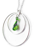 This necklace of glittering circles and a single drop of sun-melted glass is just the thing to celebrate the changing of the celestial seasons. Dangling from a recycled sterling silver chain, a dainty drop of color is framed in circles of sparkling silver, with each element swinging freely. Whether you like to match or contrast with your favorite outfit, one of these shining colors will be just your cup of tea!- Pendant length: 1 1/4" (3.5 cm), hanging from an 18" sterling silver chain