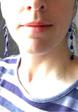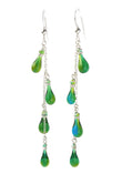 Dangling yet dainty, these fun silver and glass drop handcrafted earrings conjure visions of flowering vines. Four tiny, vibrant glass droplets alternate down a silver chain. You’ll love the dynamic swinging strands of these handcrafted earrings - long enough to occasionally brush your collar, but so lightweight you may even forget they’re there. Don’t worry - the compliments will remind you!